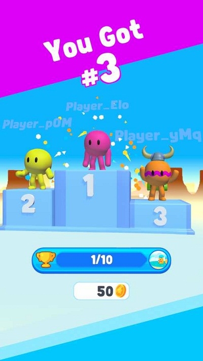 1、游戏中玩家控制属于自己的糖豆人向前冲刺,避开障碍物,注意不止你一个玩家挑战,一共60个糖豆人一起,避开对手的攻击,你可以攻击对手,谨防摔倒,笑到最后,喜欢的可以下载豆豆人淘汰赛体验