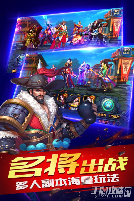 2、硬派卡牌,丰富的英雄角色,跨服征战竞技,排将布阵,热血对战,欢迎下载试玩~