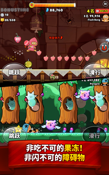 1、随意敞开式的非常好玩的跑酷类手游,手机游戏的搞怪十足,可爱卡通人物饼干,让你不一样的精彩感受
