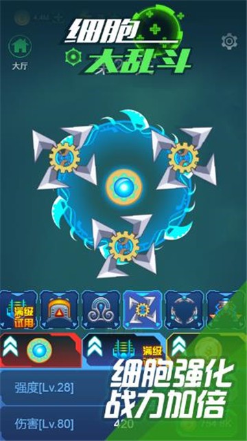 3、每一种细胞都可从攻击速度、攻击强度、技能种类等方面进行全面提升哟
