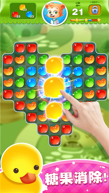 糖果世界传奇这一款消除闯关类游戏,玩家可以在这个糖果消除大冒险中完成一系列的任务,获得更多的积分,需要将每一个不同的糖果位置进行置换,然后将相同的水果连接消除,操作还是比较简单的,每一个道具有不同的作用和效果,合理的使用它们,成为一名的优秀的消除高手。